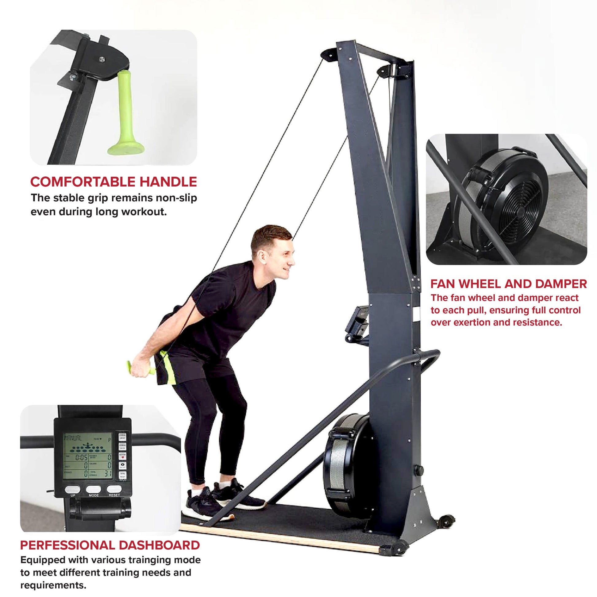 Built for athletes of all levels, it offers a customizable resistance system to adjust intensity, mimicking both flat terrain and uphill climbs. With high-strength drive cords for durability and ergonomic, sweat-resistant handles, it ensures a comfortable yet powerful workout.